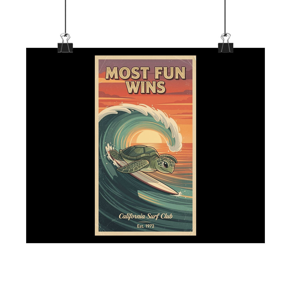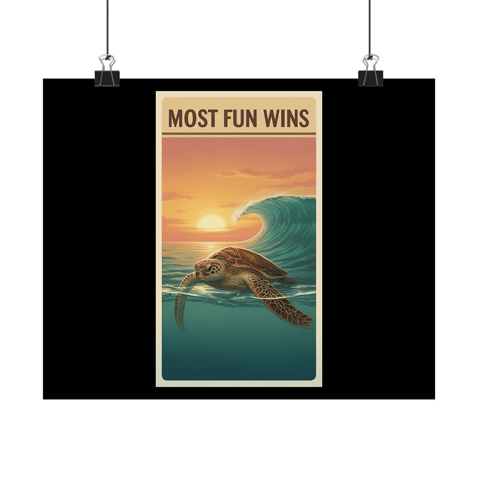 "MOST FUN WINS" turtle poster | Inspirational Gift |